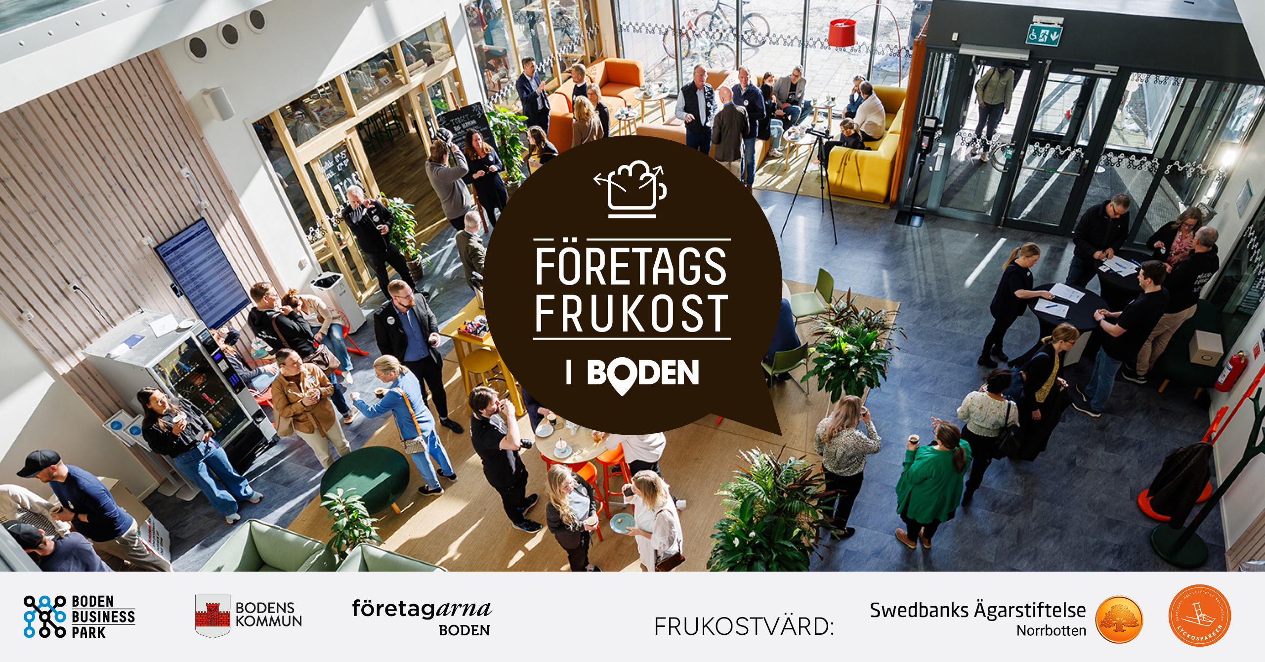 Verkstan, Boden Business Park Teknikvägen 15, BodenVälkommen till företagsfrukost på Boden Business Park! På fredagens företagsfrukost kommer vi få träffa Årets Stora Gasell vinnare i norr – Rutqvists Schakt, nya företagen Smedja Brinna och Lilla Store och så får vi träffa en ny etablering i Boden. Vi kommer också få träffa Team Sportia för att höra om deras företagsresa och nya lokala delägare.